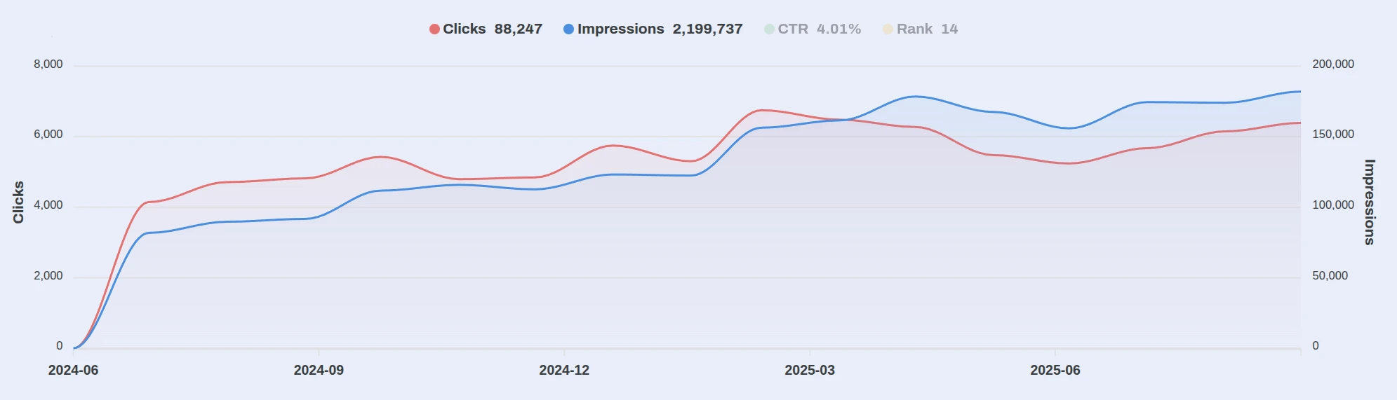 We monitored traffic closely across both brands, analyzing what content performed best and where visibility increased — including improvements in: